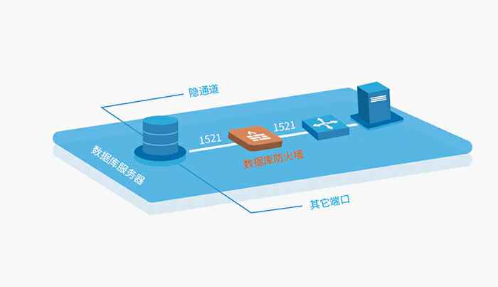 数据库防火墙部署于数据库服务器和应用服务器之间,屏蔽直接访问数据库的通道,防止数据库隐通道对数据库的攻击。